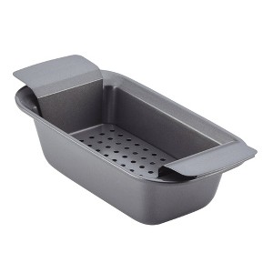 Get baking with eye-catching Rachael Ray Bakeware Loaf Pan designed to help you get the job done. This practical, must-have essential bread baking pan features comfortable grips and extra-wide handles and is constructed from durable materials that are easy to clean and care for. The new nonstick loaf pan puts the fun in functionality with a tray to pull savory meatloaf or stuffed bell peppers from the pan in perfect form. Used without the removable insert, the main loaf pan is the standard size for baking yummy quick breads like banana, zucchini, and more. Constructed from durable steel that’s sturdy enough to go in and out of the oven again and again, the loaf pan features long-lasting nonstick to deliver excellent food release and easy cleanup. Oven safe to 450°F, the nonstick loaf pan features wide handles for a comfortable, confident grasp even with bulky oven mitts.