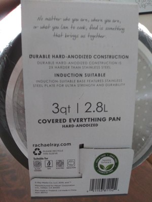 Rachael Ray Create Delicious 3qt Hard Anodized Nonstick Everything Pan with Lid Gray: Riveted Silicone Handle, Glass Lid