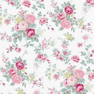 A full roll of this product is 20.5 inches wide and 396 inches long. A full roll can cover up to 56 square feet depending on the design match and pattern repeat. A sample of this product is 8 inches by 11 inches. The Rachel Ashwell Wildflower wallpaper design is an enchanting garden floral scene inspired by an antique chintz fabric remnant in the Shabby Chic® archive. A majestic display of traditional English wildflowers and roses create an alluring and timeless print with an authentic vintage feel. The soft-white background accentuates the exquisite pinks, subtle yellows and soft sage accents of this print, making it a captivating addition to any country cottage or classic interior. Wildflower was first introduced into the Shabby Chic® collections in 1992 and remains a tried-and-true favorite with customers