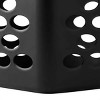 The Flexible Black Laundry Hamper offers practical storage for busy households, holding up to 2 bushels of clothing in a space-saving square design. This durable plastic hamper features a geometric pattern of ventilation holes that allows garments to breathe, helping prevent musty odors and mildew. With sturdy dual handles, transporting laundry from bedrooms to the washing machine becomes effortless, even with heavier loads. The lightweight yet robust construction makes this hamper perfect for adults and teens alike, while its sleek black finish looks neat in any bathroom, bedroom, or closet. The Flexible Black Laundry Hamper combines functionality with style, keeping clothes organized until laundry day.