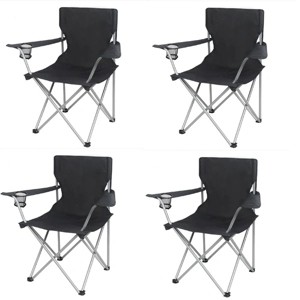 Racxily (4 PACK)Basic Quad Folding Camp Chair with Cup Holder, Black