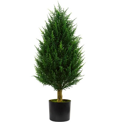 Crafted with attention to detail, this artificial cypress tree features realistic textures and natural green tones that closely mimic the look of a live plant, enhancing any space without maintenance.