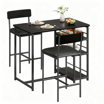 The Racxily Bar Table Set featuring a bar-height table and three matching chairs. Designed with an industrial look, it’s perfect for living rooms, dining areas, or game rooms. The built-in power outlet adds modern convenience, allowing easy charging of devices. Compact yet functional, this breakfast table set is ideal for small spaces, offering both comfort and practicality.