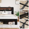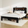 Key Features: Functional headboard includes built-in storage shelves, 2 standard AC outlets, and 2 USB ports with cable management; Robust construction with solid wood slats provides stable support for all mattress types without a box spring; Vintage-style shelf headboard combines practicality with comfort, complementing various room decors; Clear under-bed space offers additional storage; Simplified assembly process with clearly labeled and numbered parts for easy setup.