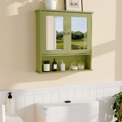 Racxily Black 30x28 Inch Wall Mounted Medicine Cabinet with Mirror and 3 Open Shelves Modern Bathroom Storage