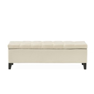 - Contemporary Upholstered Design Featuring deep button tufting and diamond stitching on the lid, this storage ottoman combines minimalist elegance with sophisticated texture for modern interiors.