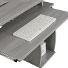 - CPU/storage compartment and slide-out accessory shelf with rear cable openings