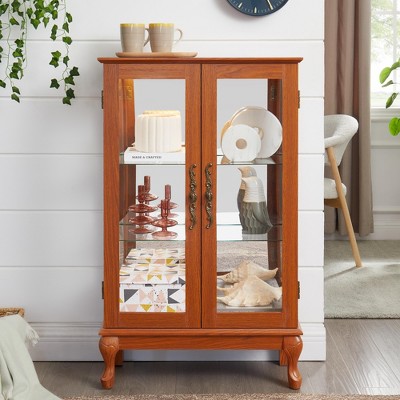 - Transitional Display Cabinet Design: The clean lines and timeless style of this display cabinet mix well with any interior home style. Designed to be used in any room of the home, this curio cabinet can provide extra storage in the dining room for dishes and serving pieces, or in the living room to create a lovely display of your favorite keepsakes.