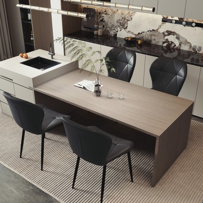 Racxily Dining Chairs Set of 2 Mid Century Modern Retro Faux Leather Chair with Walnut Bentwood Back for Kitchen Dining Room Chairs (Black PU)