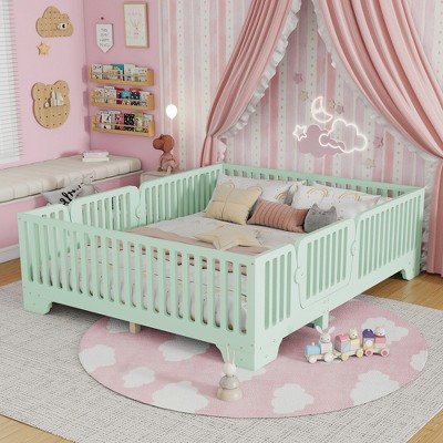 Racxily Green Full Floor Bed with Slats Fence and Door Montessori Style No Box Spring Needed