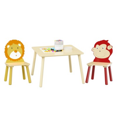 Racxily Kids Table and Chair Set with 2 Bunny Chairs, Children's Wooden Activity Table for Toddlers, Cute Animal Design Study Play Set