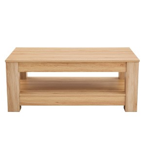 Industrial Wooden Coffee Table ¨C Double-Layer Storage Design Featuring clean lines and a versatile industrial style, this rectangular coffee table combines understated elegance with practical function. The two-tier design offers ample storage for books, decor, or daily essentials, while the low-VOC finish ensures a healthy home environment. With a 250 lb weight capacity, it safely supports coffee machines, stacks of books, or serving trays. Floor Protection & Quick Assembly Felt-padded legs prevent scratches and protect flooring. Available in Walnut and Natural Wood finishes to match various decor themes. Includes tools and instructions for 5¨C10 minute setup, seamlessly fitting living rooms, cafes, or multi-person gatherings.
