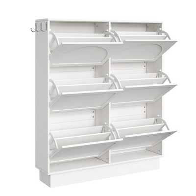 Racxily Modern Shoe Cabinet with 6 Flip Drawers, Entryway Organizer with Adjustable Shelf Space Saving Design, Free-Standing Shoe Rack, Black