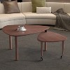 Modern Nesting Rotatable Coffee Table ¨C Sintered Stone Top Composed of two tables (large: 37.4"L x 30.71"W x 19.69"H; small: 26.3"L x 22.05"W), this set features a rotating sintered stone tabletop that slides out for flexible space utilization. Crafted from 18mm MDF with 6mm sintered stone surface and solid rubber wood legs, it combines marble-like luxury with everyday durability. Available in four classic color options. Smart Storage & Family-Safe Design The large desktop accommodates decor and daily essentials, while rounded edges prevent bumps. The stain-resistant stone surface wipes clean easily. Includes labeled parts and clear instructions for hassle-free assembly.