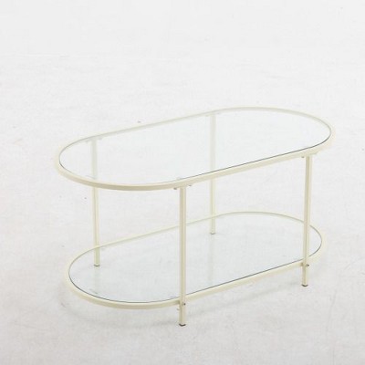 Racxily Set of 2 Rectangle End Tables, Tempered Glass Top with MDF Layer for Living Room, Transparent Glass