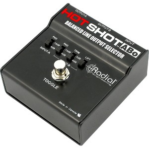 The Radial Engineering HotShot ABo balanced line output selector does the work of setting the path want for sound between 2 destinations. The completely passive HotShot ABo does not require powering of any type to work its latching switch. The multi-purpose HotShot ABo simplifies on-off and diversion control over audio signals. Radial outfits the selector with useful features such as grounding options and level adjustments to conform to a wide variety of applications. Critical to its performance is the HotShot ABo's rugged 14-gauge steel construction and ultra compact footprint. Use HotShot ABo in the most demanding professional applications while enjoying years of trouble-free performance. The Radial HotShot ABo can be used in a variety of applications including driving 2 channels on a mixing console for dry and wet effects routing; to divert a mic from the PA system to the monitors or intercom; for temporarily muting the audio signal such as when coughing; and for talkback mic control. Ultra compact and extremely rugged, the Radial Engineering HotShot ABo is made tough for years of trouble free performance and is backed with a 3-year transferable warranty.