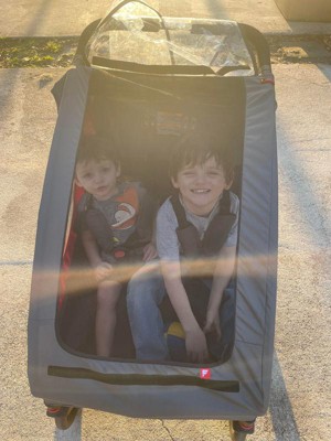 Radio Flyer provided me with a free sample to test and try out. This came in very neat packaging; all the end parts are properly secured inside. I was worried how I could put it together but after opening, it came with a QR code for video assembly and a detailed manual. Both were helpful and I was able to fix it in less than 30 min by myself. The Duoflex has a seat with a harness system to keep kids secure and has a rain cover or sunshade to protect them from the elements. Both my sons 3 and 6 enjoyed this, the belts fit them perfectly with little adjustments. There was enough space for both kids to sit comfortably. They liked how each had their own storage mesh next to them to keep water bottles, toys or books. Kids enjoyed the front view while being safe inside with the mesh screen, the side view screens are added bonus. This Duoflex Flyer has pretty much enough storage area at the back side below the handlebar. I was surprised to see ample amount of space to store kids' stuff. The handlebar is of perfect height, and it runs smoothly in stroller mode. I love the storage space and weather protection screens. I really like how versatile it can be transformed from bike trailer to a stroller mode with just adding 2 wheels. I felt the trailer to be heavy when moving from a vehicle, but it folds down perfectly and is easy to store in any vehicle or at home. I also didn’t like the fact that I can’t use it in a small grocery store as it takes more space to move between aisles. I felt this bike trailer is more stable than bike seats, which can make parents feel more comfortable when riding with their children. I liked its ease of use, stability, and overall performance. I am looking forward to making use of this in many possible ways and already planning for a long bike ride with the kids being safely in the stroller. While the trailer can be heavy to lift and store, the benefits of its durability and stability far outweigh the inconvenience. I highly recommend Duoflex flyer trailer to any parent who wants a safe and secure way to transport their children on bike rides.
