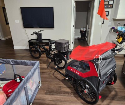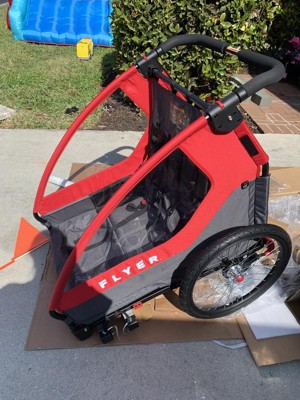Radio Flyer provided me with a free sample to try out. I have three little kids, with this trailer and the attachable car seat I was able to bike with all of them! Its easy to use and worked great!