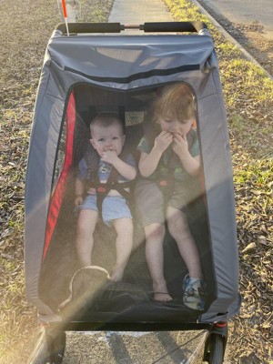 Radio Flyer provided me with a free sample to test and try out. This radio flyer 2-in-1: Bike Trailer and Double Stroller is a game changer as I can use it as bike trailer and double stroller. It is really quick to Assemble and took almost 10 mins. There is enough leg room for the babies. The safety belts are adjustable and it's great. It has nice cushion so that the baby can sit comfortably inside. It has a mesh and clear screen. It also has the storage behind the baby seat good enough to keep diaper backpack, blanket, snacks water bottle and so on. If not in use I can close it for compact storage. It is quick in converting from bike trailer to stroller. Highly recommend.
