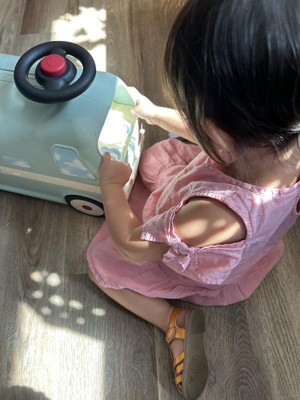 [This review was collected as part of a promotion.] Radio Flyer provided me with a free sample of the product to try out and review: Radio Flyer Park and Play Camper designed for ages 1.5 – 4 year old kids. The seafoam green and beige color combination gives me a retro feel to it. I love it! I love that it still has that iconic Radio Flyer tire design with a red dot in the middle. The smooth surface inside and outside makes it easy to clean. There's a storage on the "roof" of the camper which can hold the removable/playable pieces that came with it. As for the overall quality and durability, it feels very sturdy and not flimsy as a riding toy. It rides great on carpet. My kids like to drive it zooming fast all over vinyl flooring. It does not leave traces, scratches or marks on our vinyl floor. There is a squeaky toy style horn on the steering wheel that does not require battery to be operated. The camper encourages imaginative play for sure. I overheard a conversation during a pretend play between our kids, packing up for a "trip to the mountains" then driving away with the camper saying goodbye. On day 1 of receiving the package, my kids played all afternoon with it until it's time to get ready for bed. On day 2, this was the first toy sought after. One could just imagine how popular this toy is right now within our family. The open and close "doll-house" feature of the toy promotes fine motor skills for a toddler. There is a light switch button style that serves as a lock to keep the camper from falling apart while driving it. In our experience, if the lock is not latched properly, the camper WILL open on its own upon riding it. With that, I could see how that feature could also serve as a problem-solving toy. I believe that price point is fair considering that it has more than 1 way to play it. I believe that the price point reflects both the quality of the materials used in this product and the aesthetic design. I recommend this product. This would make a great gift to boys and girls alike and for a toddler who loves to pretend play. As I said, it's like a doll-house too, but not too girly. It could also be an appropriate gift for a boy. Our family had teaching opportunities learning what a camper is, and all the fun things that could come with the camper on a trip. I've always wanted to have a van life/tiny home life but for now, this would do!