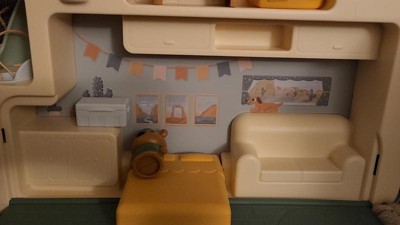I bought this for a special friend's little 2yr old for her birthday. She loves it!!! One of her favorite toys and plays with it all the time. She loves that the bookcase comes down to make a bed and that it comes with two figures that can be moved around. The refrigerator opens too. She enjoys pushing the buttons that flash and teach numbers. Then there is the added bonus of closing it and riding the motorhome. This toy is very well made and should last a long time to be passed down to younger siblings. Well worth the price!