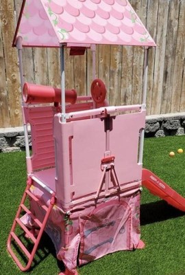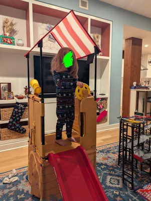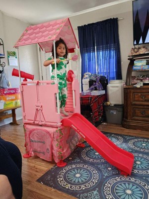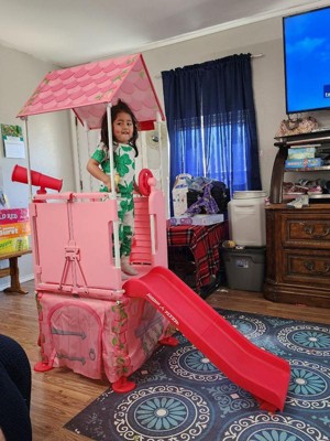 [This review was collected as part of a promotion.] My little one loves that it fits inside the house as well as outside in the yard ! It's her little castle that she can turn into a fort whenever she pleases. It's very sturdy and has great amenities such as the driving wheel and the telescope. Her favorite is the slide and cubby underneath!