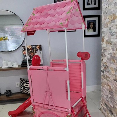 [This review was collected as part of a promotion.] So me and my son put this together. It was easy to read directions as well as easy to assemble. My daughter as well as my granddaughter absolutely love it and had a blast playing on it. It has a little hidden space underneath it for even more fun. It also has locks on the side of the window so you can open it lol thought that was very cute.