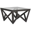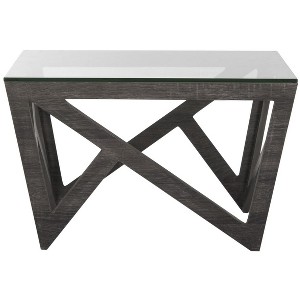 This bold coffee table was inspired by the art design furnishings in a contemporary painters studio. Its dark grey finish perfectly frames the sleek glass top, bringing a sophisticated, sculptural style to any modern interior. Care Instructions: Dust regularly with a soft, dry cloth. Never use oiled or treated cloths on lacquered finishes. Some finishes can be wiped with a damp (not wet) cloth, followed at once by rubbing with a dry cloth to remove fingerprints and smudges. For persistent spots, gently clean with a soft cloth and a solution of water and mild soap, make sure to wipe dry. Use adhesive felt pads, coasters and placemats to protect your furniture.
