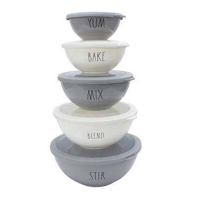- Versatile and Convenient: Rae Dunn 10 Piece Mixing Bowl Set includes 5 nesting prep bowls and 5 lids. Perfect for mixing, storing, and organizing your kitchen. Durable, easy to clean, and space-saving design.