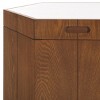 Add a functional and stylish feature to your home with our Rafaela hexagon accent table. The sleek geometric appeal of the table is accentuated by a hexagon-shaped tabletop. Each side is enlivened with the rich and lively textures of natural brown veneer to bring a dose of warmth to your home. The end table is completed with a white tabletop that lifts to reveal roomy storage underneath. Our charming accent table can store all your knick-knacks and keep essentials within each reach to keep your space organized at all times.