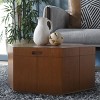 Add a functional and stylish feature to your home with our Rafaela hexagon coffee table. The sleek geometric appeal of the table is accentuated by a hexagon-shaped tabletop. Each side is enlivened with the rich and lively textures of natural brown veneer to bring a dose of warmth to your home. The end table is completed with a walnut tabletop that lifts to reveal roomy storage underneath. Our charming coffee table can store all your knick-knacks and keep essentials within each reach to keep your space organized at all times.