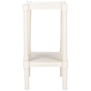 A contemporary chic interpretation of timeless British Colonial style, this Rafiki Square Accent Table brings a touch of classic charm to any interior. A distressed white finish modernizes the traditional turned legs and carved details of its elegant pine wood frame.