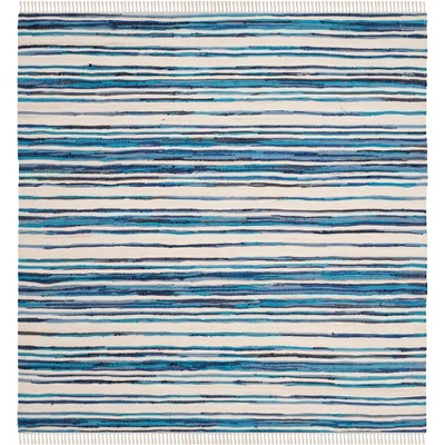 Rag Rug RAR121 Hand Woven Indoor Accent Rug - Aqua/Multi - 4'x4' - Safavieh