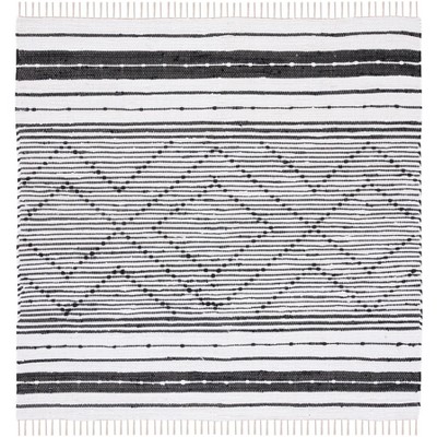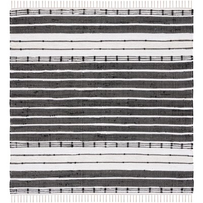 Rag Rug RAR121 Hand Woven Indoor Area Rug - Black - 6'x6' - Safavieh