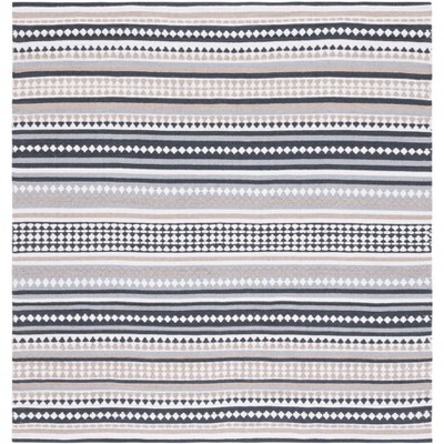 Rag Rug W/ Fringes RAR122 Flat Weave Indoor Area Rug - Grey/Black - 6'x6' - Safavieh