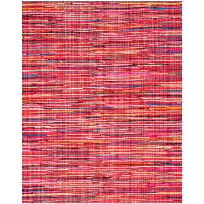 Rag Rug W/ Fringes RAR122 Flat Weave Indoor Area Rug - Red/Grey - 8'x10' - Safavieh