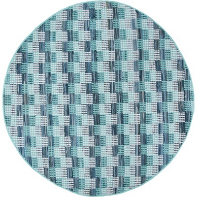 Rag Rug RAR125 Hand Woven Indoor Area Rug - Turquoise/Multi - 6' Round - Safavieh