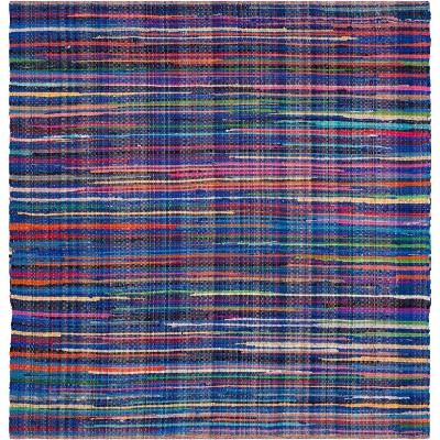 Rag Rug RAR126 Hand Woven Indoor Area Rug - Ivory/Blue - 6'x6' - Safavieh