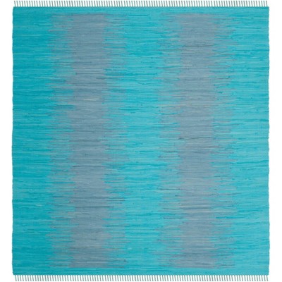 Rag Rug RAR127 Hand Woven Indoor Area Rug - 6'x6' - Turquoise/Multi - Safavieh