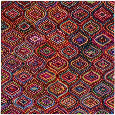 Rag Rug RAR130 Hand Woven Indoor Area Rug - Yellow/Multi - 6'x6' - Safavieh