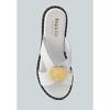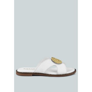 The buckle embellishment enhances the overall aesthetic of the slip on sandals. The light cushion insoles offer comfort while the cut out detail is visually appealing. They are easy to wear and look chic and fashionable.  Type: Slip On Sandals Heel Type: Flat Heels Upper Material: Genuine Leather Lining: Leatherette Out Sole: Leatherette Open Rounded Toe Buckle Embellishment RCSH4092