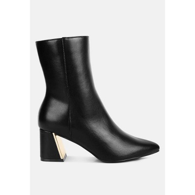 The metallic sock boots are sure to make a distinctive statement with the shiny exterior. The block heels are bold and the comfortable cushion insoles offer a relaxed walkability experience. Type: Boots Upper Material: Stretchable Metallic Pleather Outer Sole: TPR Closed Round Toe Block Heel Zipper Detail Paneling Detail Comfortable Cushion Insoles Heel Height: 3 inches RCSH5207