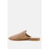 Decorated with tiny studs along with the insole frame, this canvas mules in camel with glitter yarns woven in between is a certain aesthetic you would definitely love!??Sets well on the feet, and is for all-day wear. Type: Mules Heel Type: Flat Mules Upper Material: Woven Jute with Glitter Yarns Lining: Letherette Outer Sole: Processed Rubber Almond Toe Slip-on Style Anti-slip outsole, Keeps safe on all surfaces The actual product color may slightly vary from the images shown on the website RCSH1872