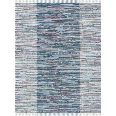 Rag Rug RAR126 Hand Woven Indoor Area Rug - Ivory/Blue - 9'x12' - Safavieh