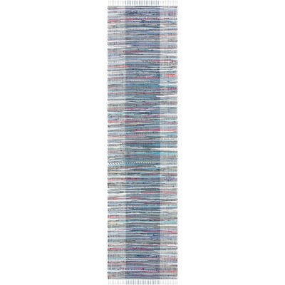 Rag Rug RAR126 Hand Woven Indoor Runner Rug - Ivory/Blue - 2'3"x9' - Safavieh
