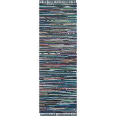 Rag Rug RAR127 Hand Woven Indoor Area Rug - 9'x12' - Blue/Multi - Safavieh