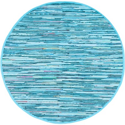 Rag Rug RAR129 Hand Woven Indoor Area Rug - Turquoise/Multi - 6' Round - Safavieh