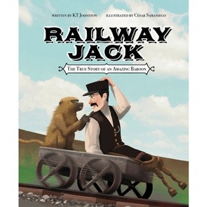 The children you interact with are probably familiar with the idea of a service dog, but have they ever heard of a service baboon? Railway Jack is about a baboon that learned to help a disabled railway worker, but more than that it's a touching story of a resilient, persistent, and creative man and a loyal and clever primate companion. At the end of the book, author KT Johnston provides a wealth of extra resources that can provide the structure for a lesson on primates, friendship, animal helpers, disabilities, problem-solving, railroads, or any number of topics. The story is extraordinary. It starts with a South African fellow named Jim Wide, who looked like he might have his railroad career cut short when an accident caused him to lose both of his legs below the knee. He figured out how to build a handcart that helped him do a different job at the railyard, but it was still difficult for him to do with the two wooden legs he had fashioned. One day, Jim saw a man who had a baboon with him to help lead his oxen. Realizing how helpful such an animal could be, he made a deal to get the baboon on. At first, he wondered if the baboon, named Jack, would just be more trouble, but he was happy to find that the two of them bonded well and that Jack was able to do things like sweep and pump water. It turns out, Jack could learn to do a great deal more. He could load Jim's cart on the tracks and push him to work. It's charming to see the two of them riding down hills together, having a great time. Johnston tells us "He [Jack] was so helpful that Jim came to think of Jack not merely as his assistant, but also as his best friend. It was clear Jack felt the same way. He would sit with his arm around Jim's neck and stroke Jim's hand, chattering endlessly." Jack even learned how to throw the switches for the trains that came, learning from the number of whistle blows which track the engineer wanted. One of the passengers on the train was understandably not too happy to see a baboon running the switches, and complained to management. Here we have the showdown of the story, with the company bosses testing Jack to see if he could actually do the job. I won't give away all the ending here, but will say it ends happily for both Jim and Jack. This is a charming story with all kinds of funny details that will interest and amuse children--as well as grownups. After the story, Johnston provides more information on what happened to Jim and Jack and includes several photos, which I loved seeing. She also includes information about baboons, a history of service animals, a glossary, discussion questions, internet resources, other books about remarkable animals, and a bibliography. The story is presented in a picture book format with large illustrations and 2 to 4 paragraphs on the pages with text. César Samaniego's illustrations have a smudgy, coal-suffused feel to them, appropriate to the railyard and effectively conveying the emotions and action of the story.--Adele Jeunette "Owlcation, The 18 Best New Narrative Nonfiction Books for Grades 3-6"