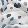 The PURPLE RAIN fabric shower curtain features soft purple, aqua and grey tones on a crisp white backdrop. A unique geometric print with plenty of neutral white space in the background. The unique design will add a sense of style to any bath decor! Made from 100% Polyester and Machine Washable.