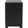 A fabulous display of modern sophistication, this Raina Three drawer Nightstand exudes chic couture style. Rainas classic Greek key pattern is paired with a sleek black hue and polished chrome hardware for matchless fashion flair.